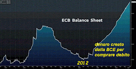(...) i 4200 miliardi del bilancio della BCE (che nel 2008 era di 1200 miliardi) e i 720 miliardi del bilancio di Bankitalia (che 2 anni fa erano 190 miliardi di meno) vengono usati solo per le banche, gli investitori finanziari e le multinazionali.